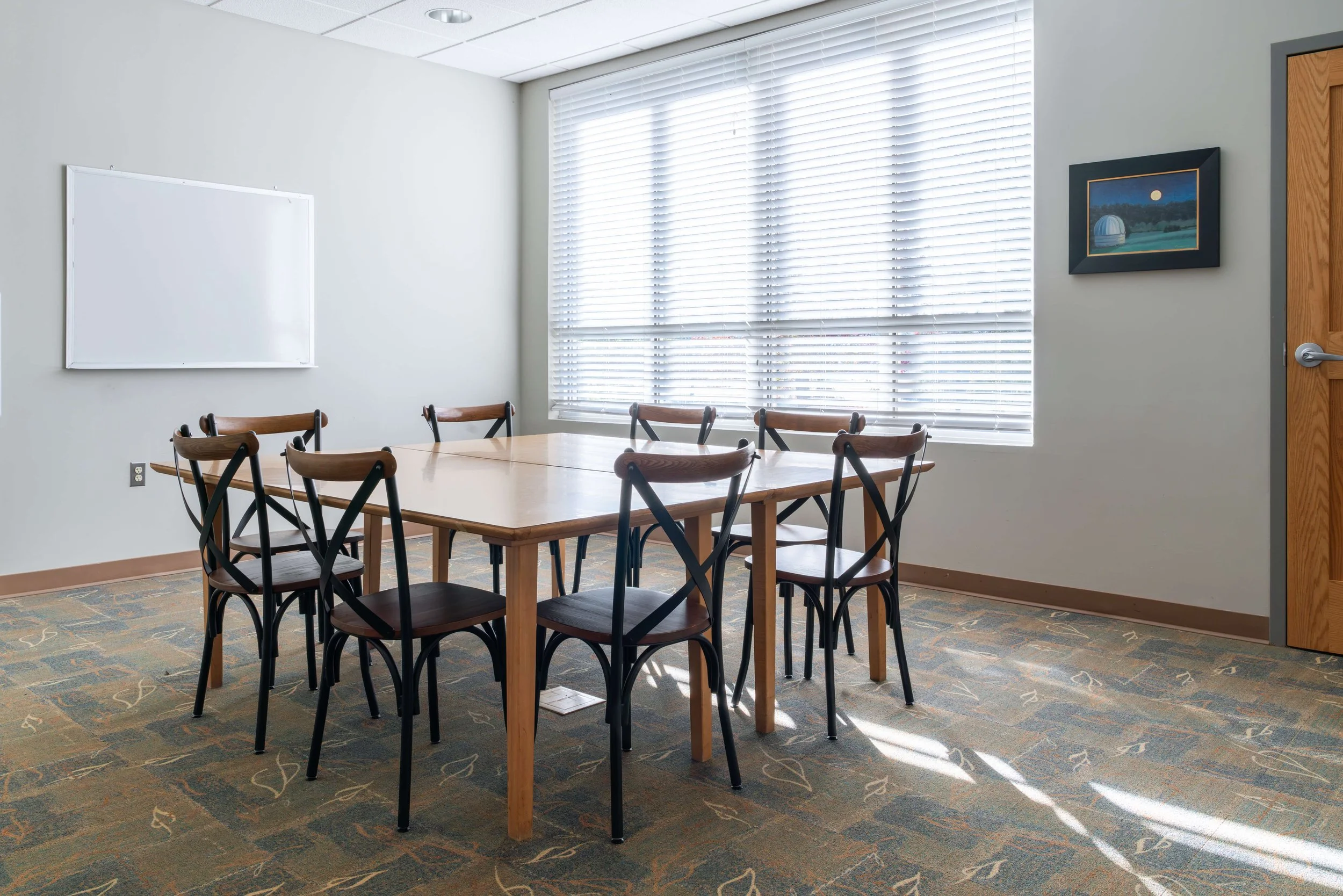 The Inn offers 20 hotel-style rooms (most with two queen beds), a comfortable main-floor common area with cozy fireplace and kitchenette, a conference room for up to 40+ guests (with AV/Wi-Fi), and is conveniently located to the Dining Hall and Stone Barn meeting space.