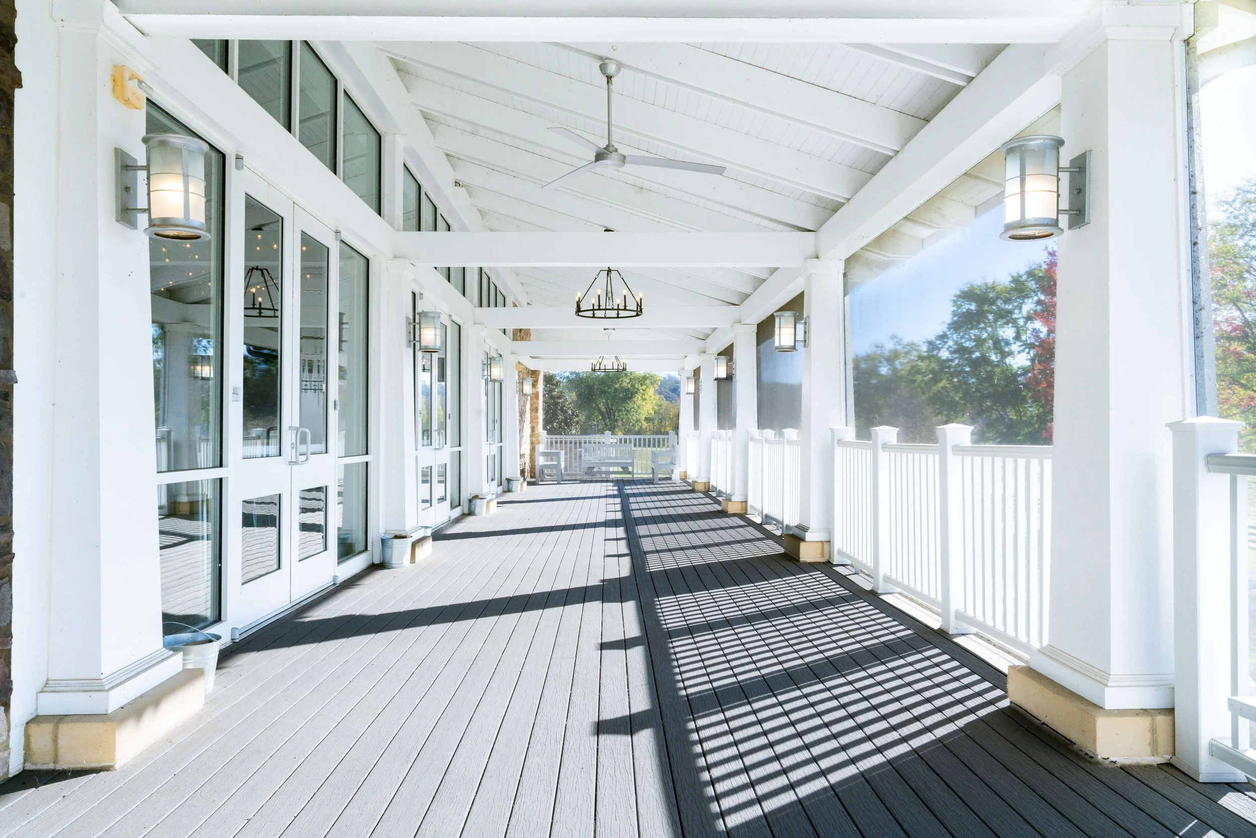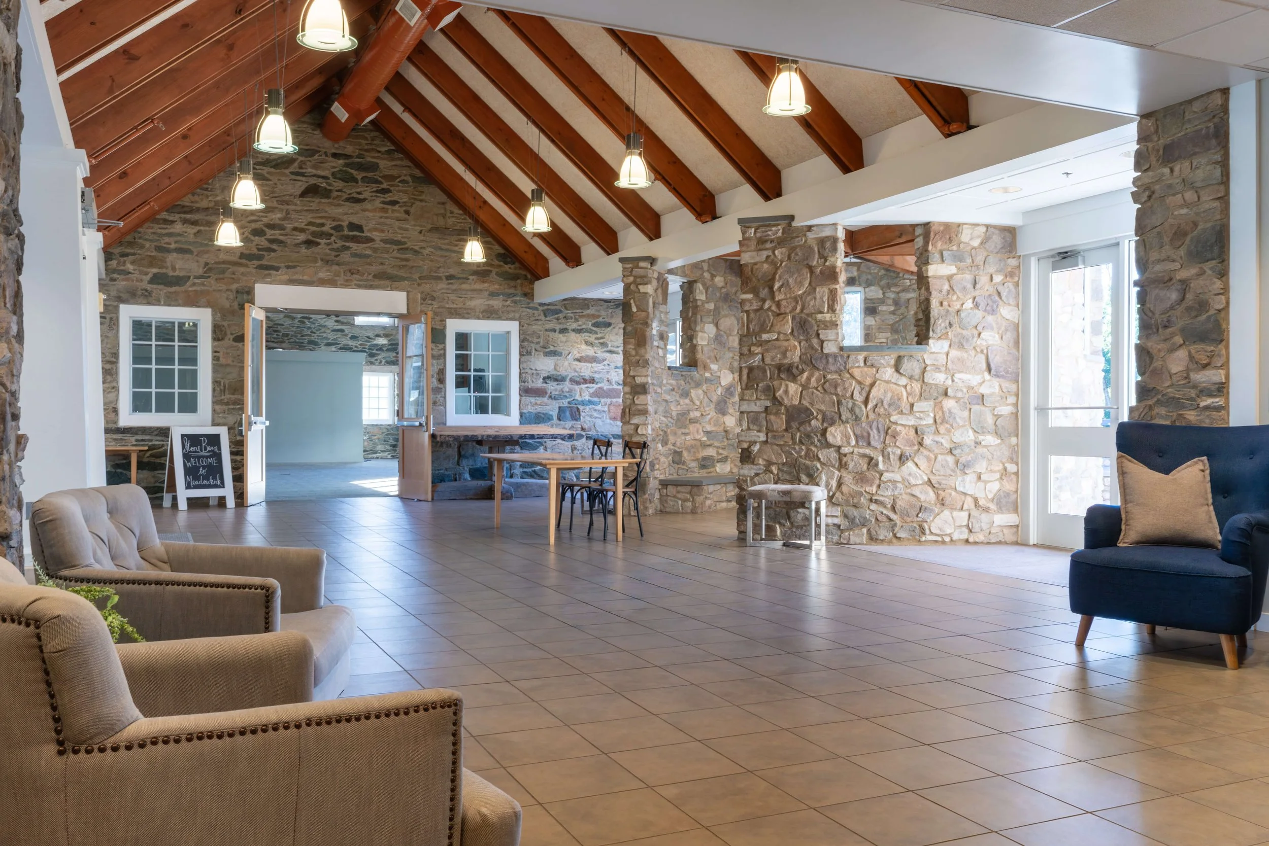 The Stone Barn is connected to the Dining Hall via the Crossing, an indoor breezeway featuring a small conference room for breakout meetings, an indoor fireplace and outdoor fire circle.