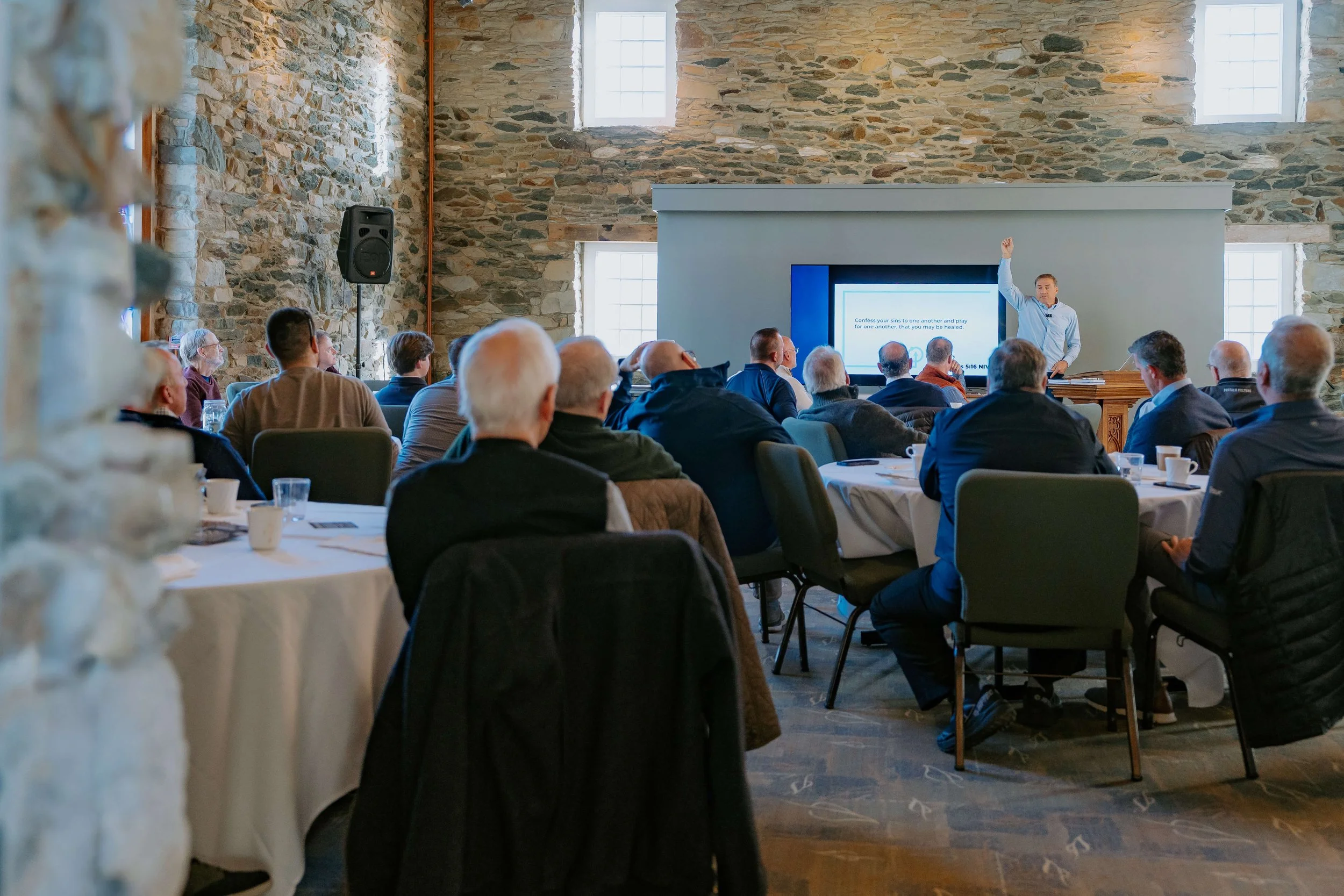 The Stone Barn is Meadowkirk’s signature 19th-century gathering space. It is the largest meeting space on the property, with high-ceilings for up to 120+ guests with multiple set-up possibilities. It is also equipped with a sound system with multi-port mixer, speakers, microphones, LCD projector, and large TV monitor for visuals.